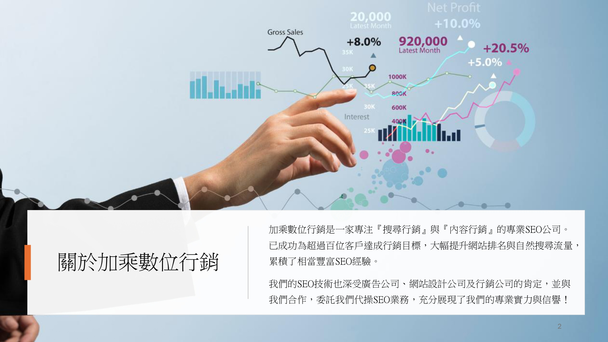 加乘數位行銷由SEO專家Nestor領軍,服務超過百家台灣與香港企業,整合三大核心策略: